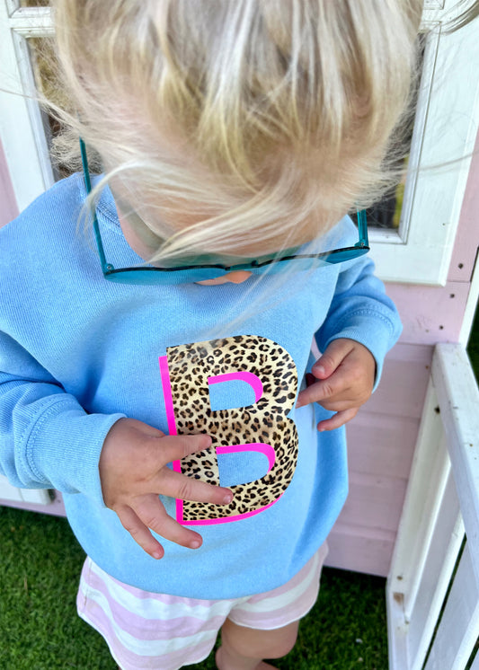 Kids Personalised Neon Leopard Print Initial Sweatshirt