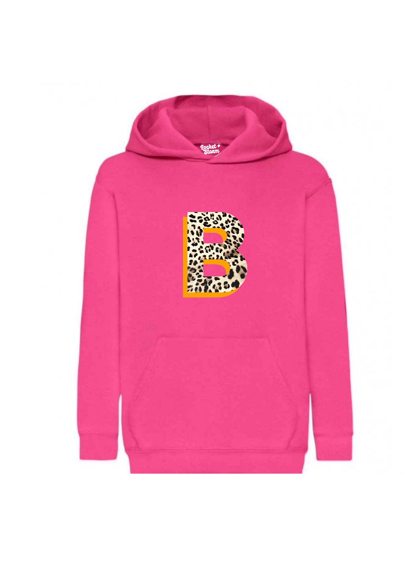 Kids Personalised Neon Leopard Print Initial Hoodie