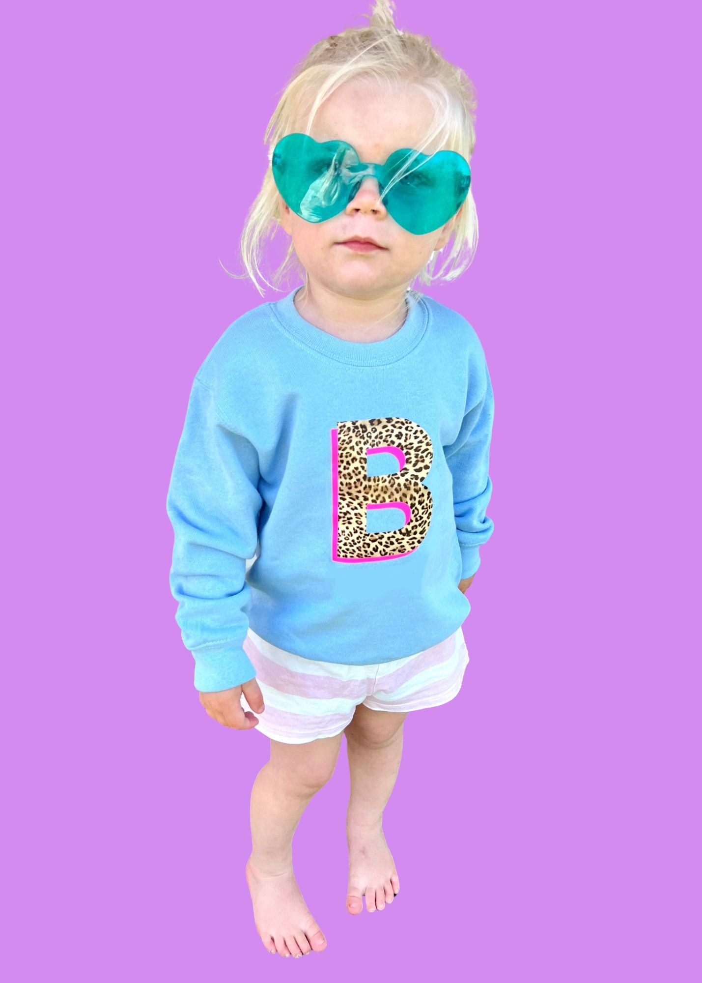 Kids Personalised Neon Leopard Print Initial Sweatshirt🌟🌟🌟🌟🌟
