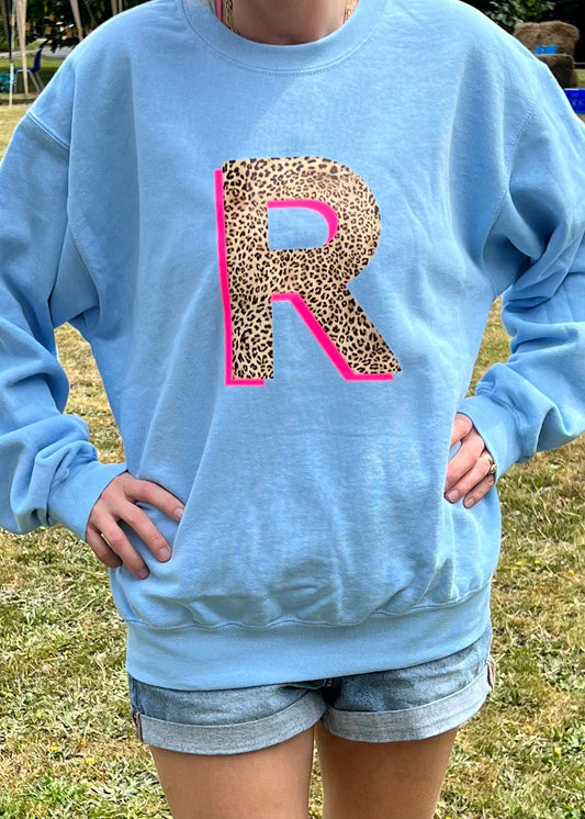 Adult Personalised Neon Leopard Print Initial Sweatshirt