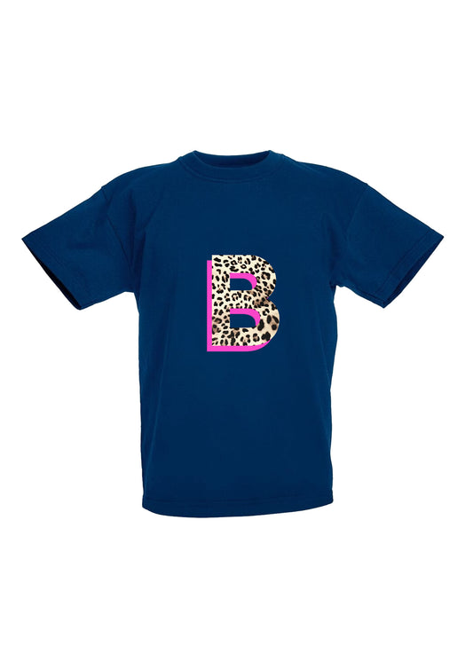 Kids Personalised Neon Leopard Print Initial T-Shirt