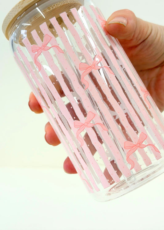 Pink Bow Stripe Iced Coffee Cup